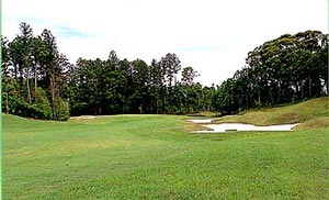 丘陵コース。高低差18mとフラットな地形ながら、なだらかなうねりがあり、また大小5つの池が10ホールにからむなど、変化と戦略性に富む仕上がりとなっている。設計は、定評あるD・ミュアヘッド。一つひとつのホールはそれぞれに独特の貌をもっており、プレーヤーに常に緊迫感を要求し、飽きさせない。特に印象深いのが7番ショートと8番ミドル。波形のバンカーが2個ずつ対象に配置されており、大きな池を包み込むようにグリーンの手前に浮かび、青い水、白い砂、グリーンの緑のコントラストが美しい景観を生み出している。